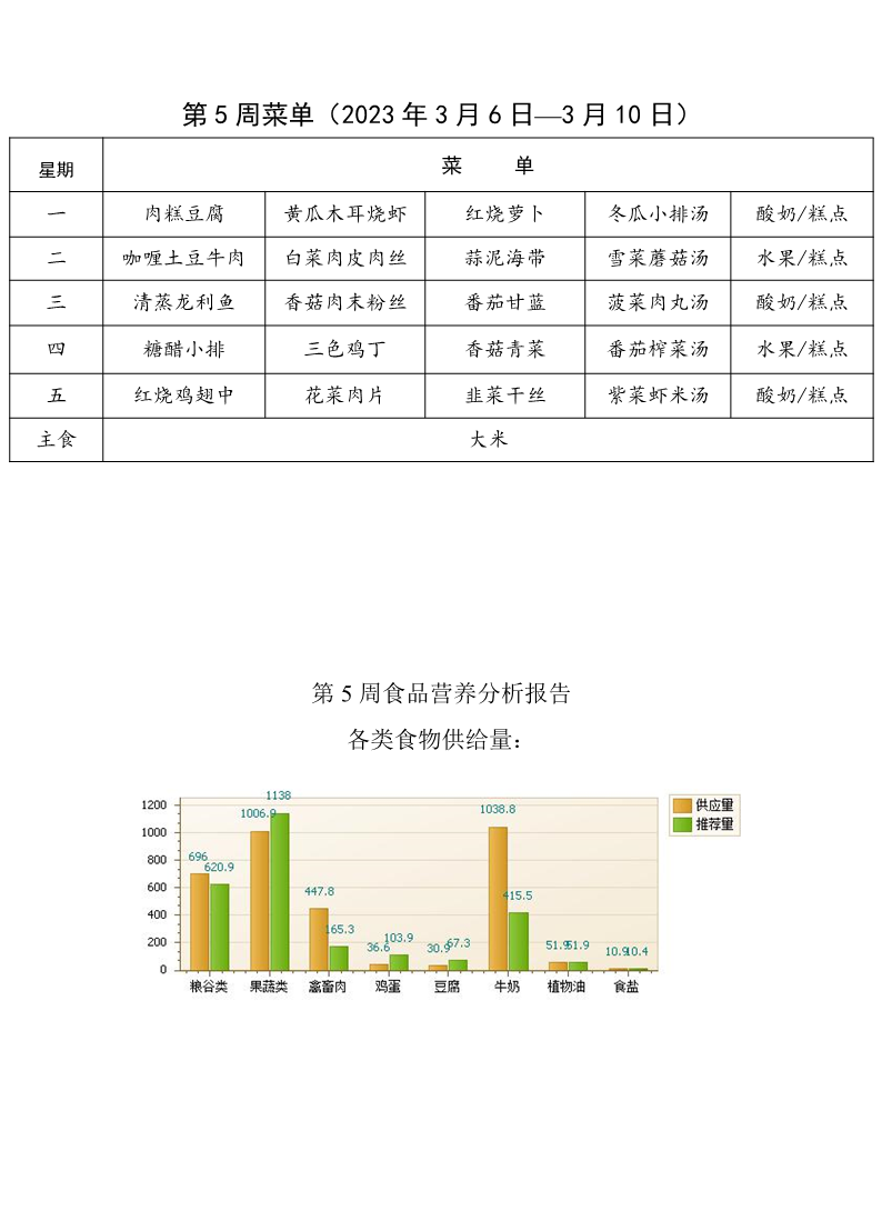 第五周菜单(2023年3月6日—3月10日)