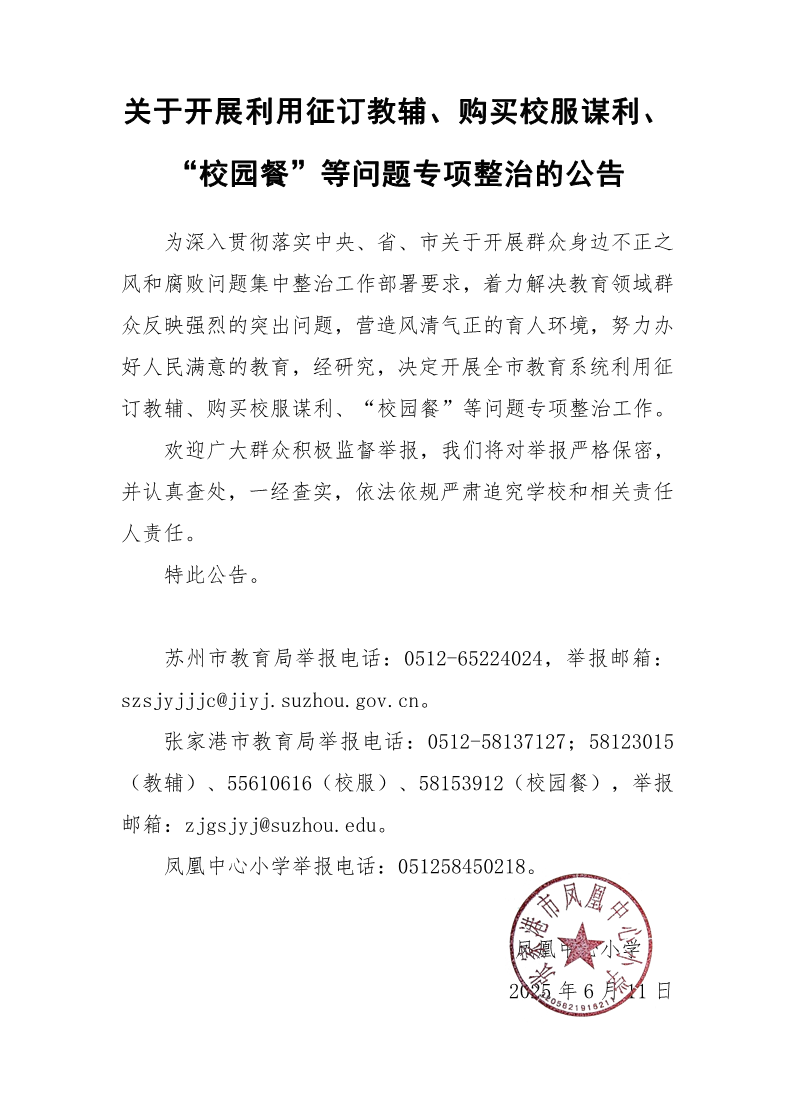 关于开展利用征订教辅、购买校服谋利、“校园餐”等问题专项整治的公告